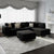105" x 80" , Stool is 30" x 30", Black Colour, Golden or Silver - High or Low legs option, Modern design that comes with all the cushions displayed in picture. Customisation option is available.