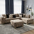 105" x 80" , Stool is 30" x 30", Mink/Beige Colour, Golden or Silver - High or Low legs option, Modern design that comes with all the cushions displayed in picture. Customisation option is available.